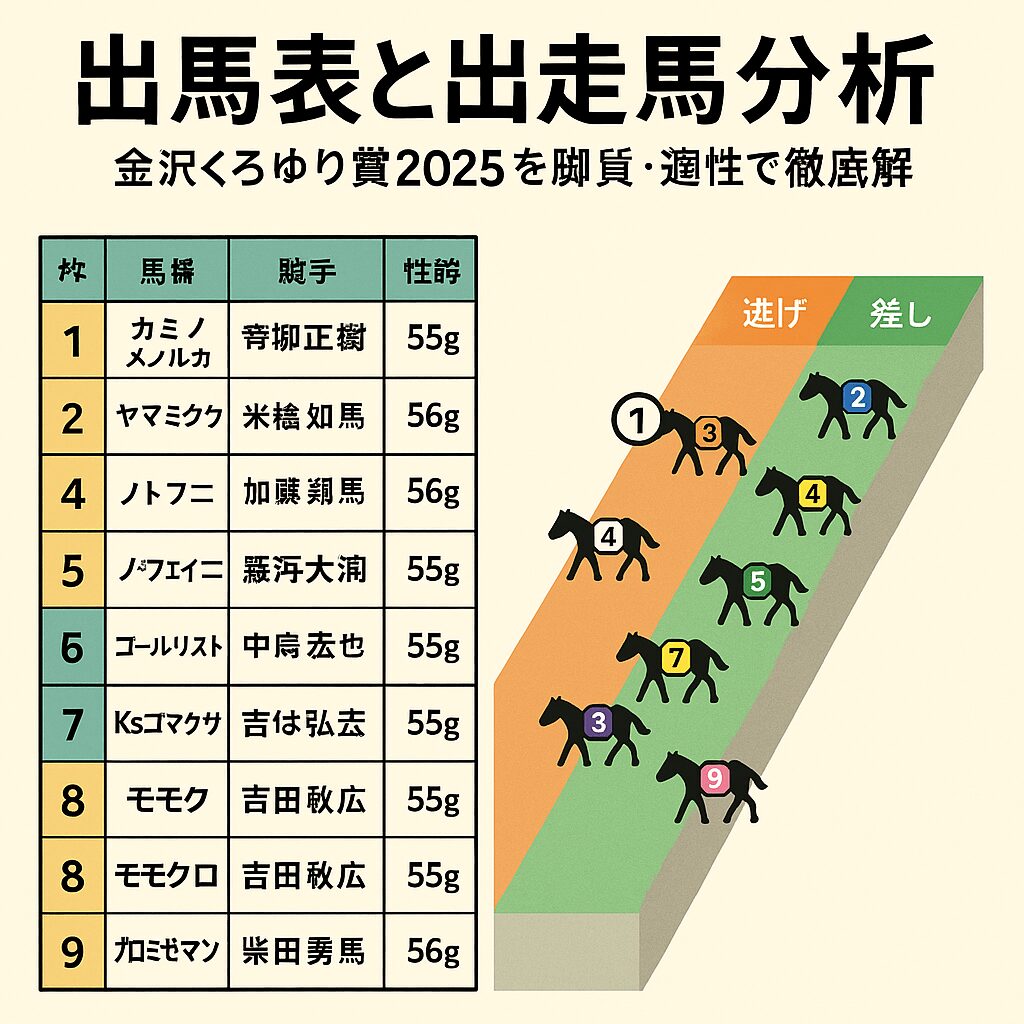 出馬表と出走馬分析|金沢くろゆり賞2025を脚質・適性で徹底解剖