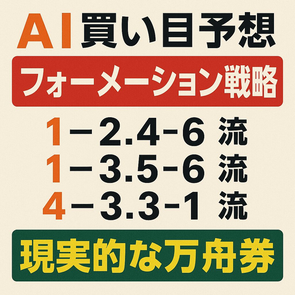 1号艇を軸に、内差し&カド勢を中心とした構成。磯部の差しと長田のまくりを両立させる「安定軸+波乱の芽」のハイブリッド。