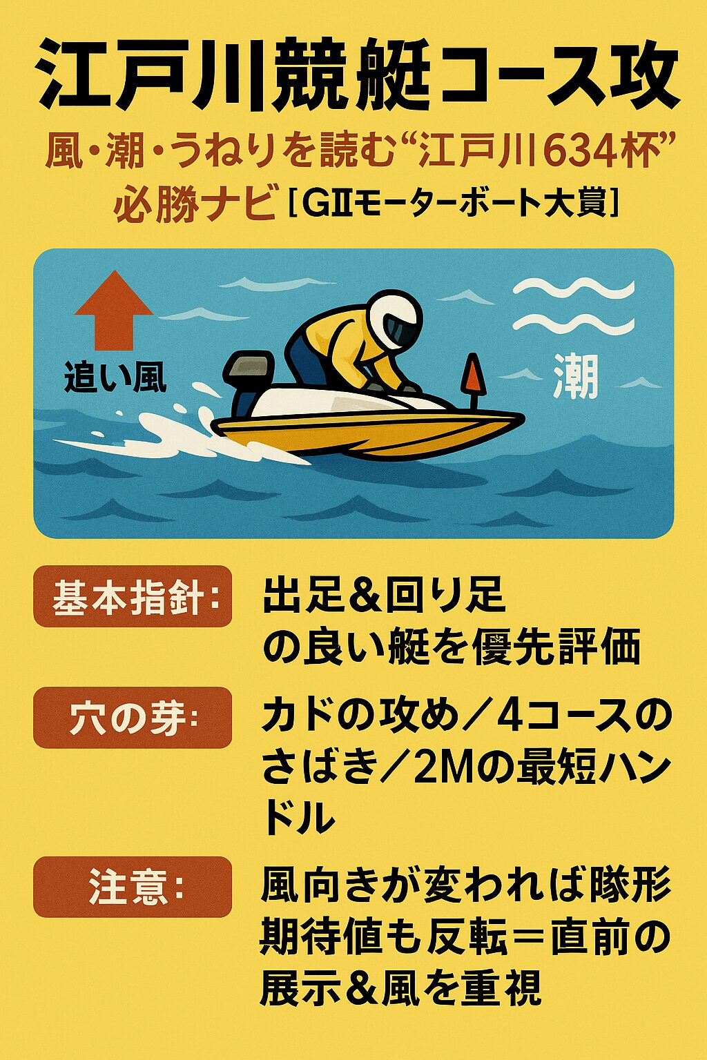 江戸川競艇コース攻略|風・潮・うねりを読む“江戸川634杯”必勝ナビ【GⅡモーターボート大賞】