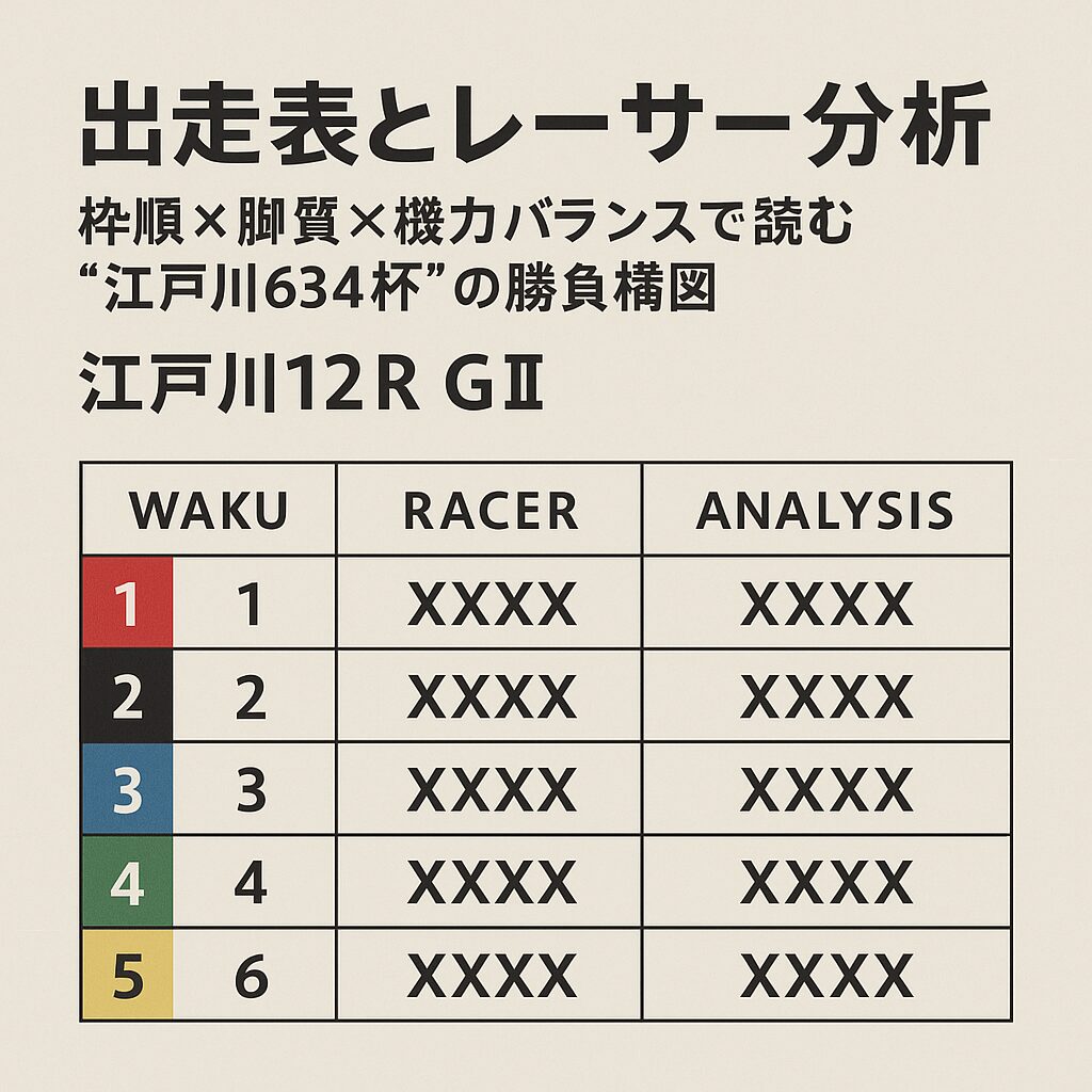 出走表とレーサー分析|枠順×脚質×機力バランスで読む“江戸川634杯”の勝負構図【江戸川12R GⅡ】