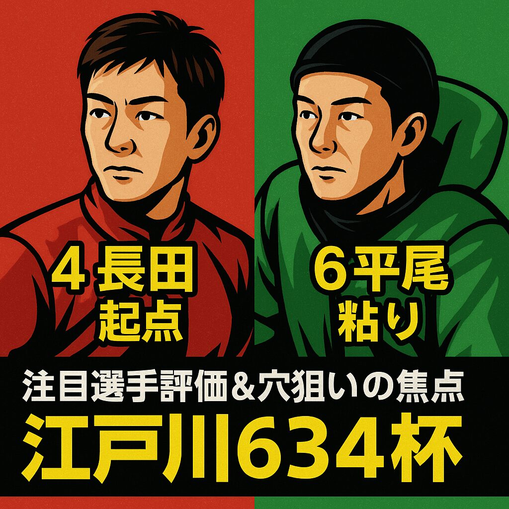 堅実派も穴党も楽しめる今回の江戸川634杯。インが逃げても荒れても、“買うべき筋”が必ず存在します。展開の芯は4、仕上げの妙味は6――この2人を軽視すれば、万舟券を逃すことになるかもしれません。