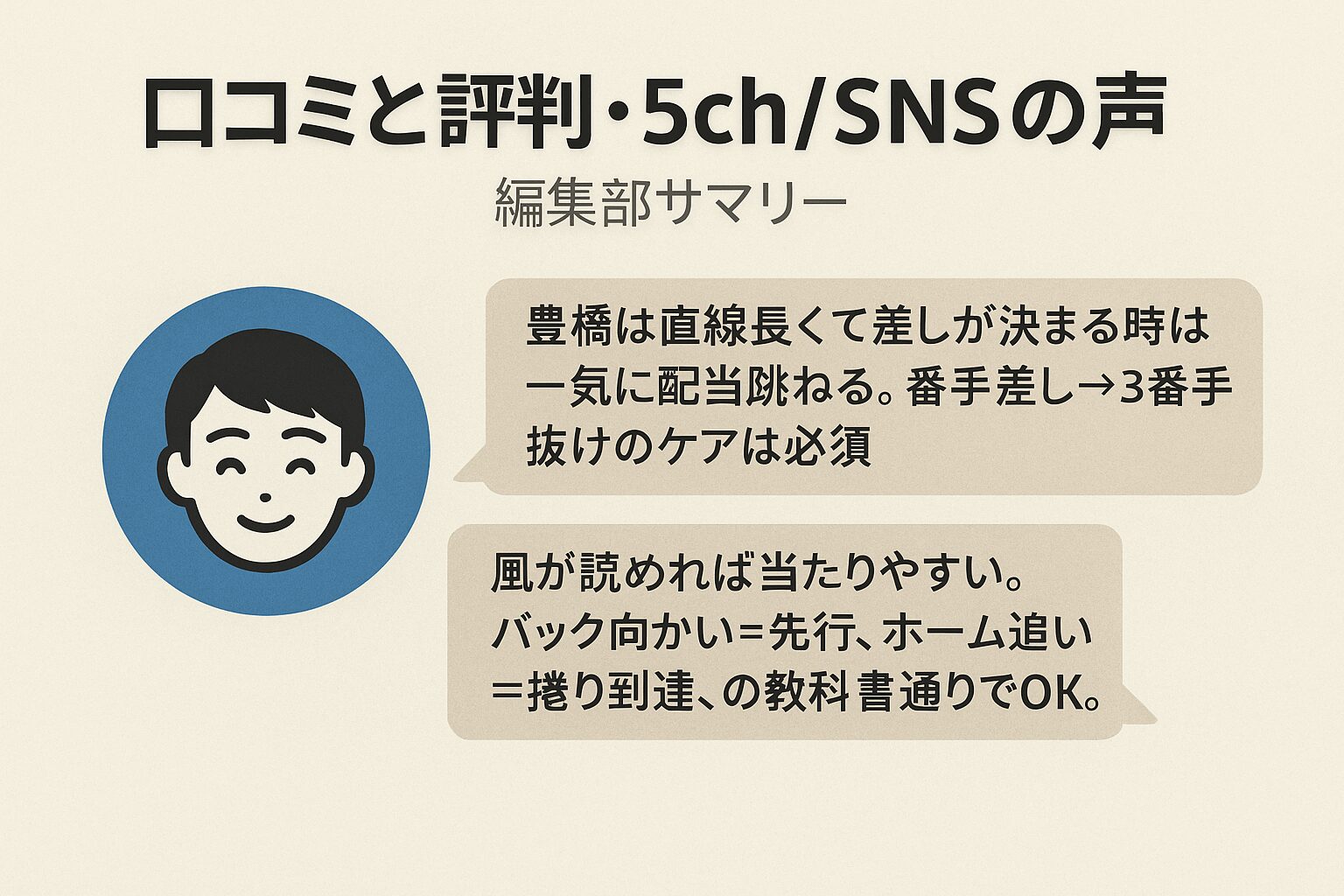 実際に5chでは「豊橋は風向きと脚質の読みが当たり外れを左右する」という意見が目立ちます。