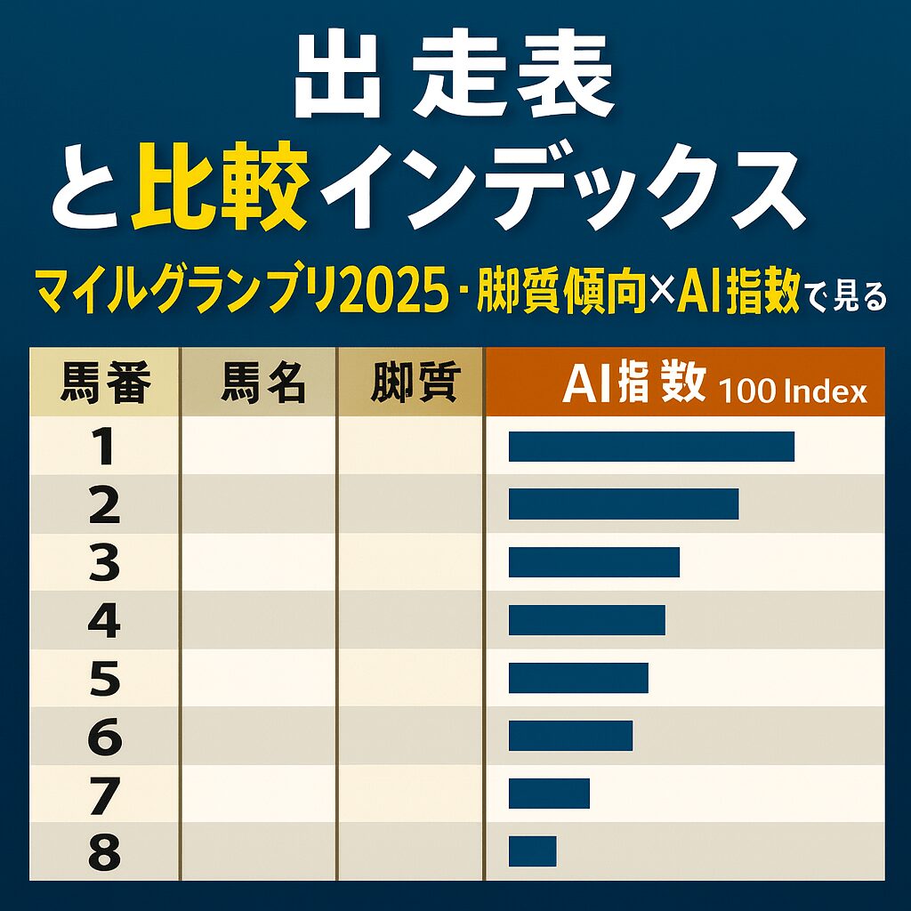 出走表と比較インデックス|マイルグランプリ2025・脚質傾向×AI指数で見る有利ゾーン