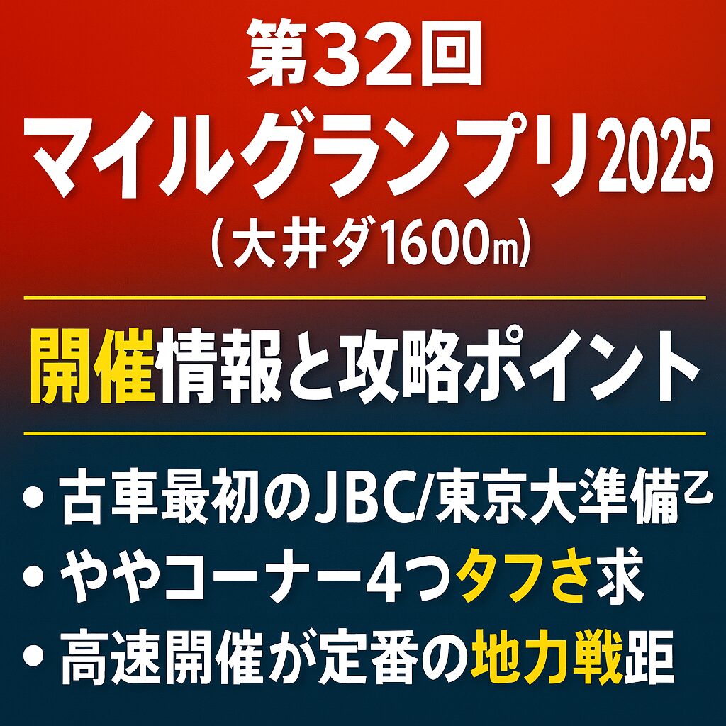 レース概要|第32回マイルグランプリ2025(大井ダ1600m)開催情報と攻略ポイント
