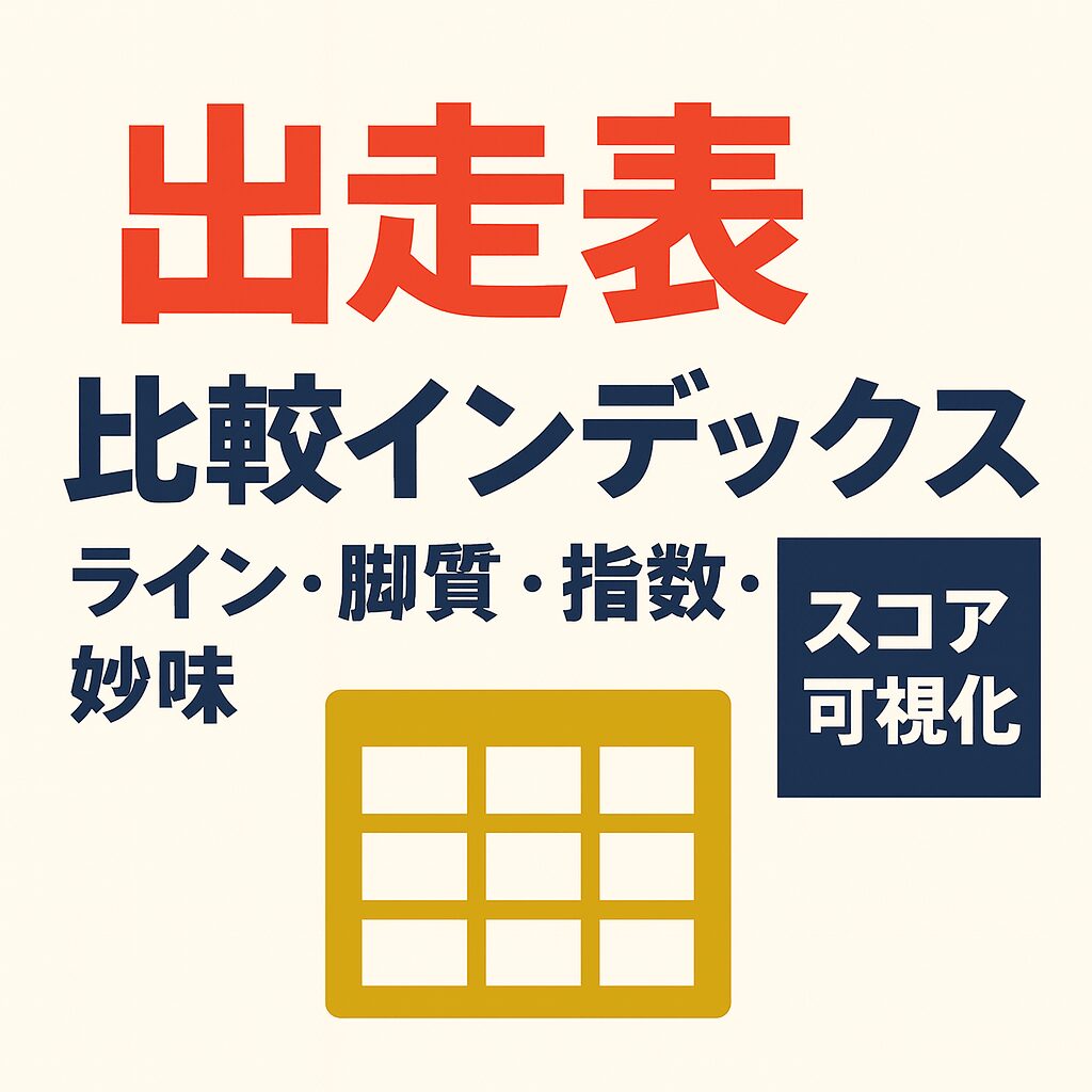 出走表と比較インデックス|ライン・脚質・指数・妙味【スコア可視化】