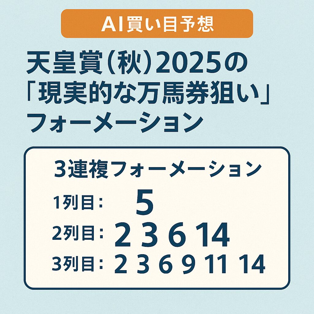AI買い目予想|天皇賞(秋)2025の“現実的な万馬券狙い”フォーメーション