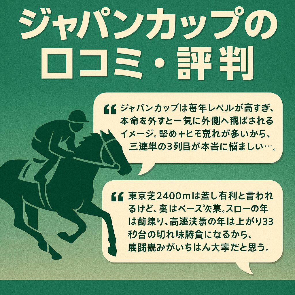 ここでは、実際にファンから寄せられやすい「リアルな声」を抽出し、ジャパンカップならではの傾向を客観的にまとめました。