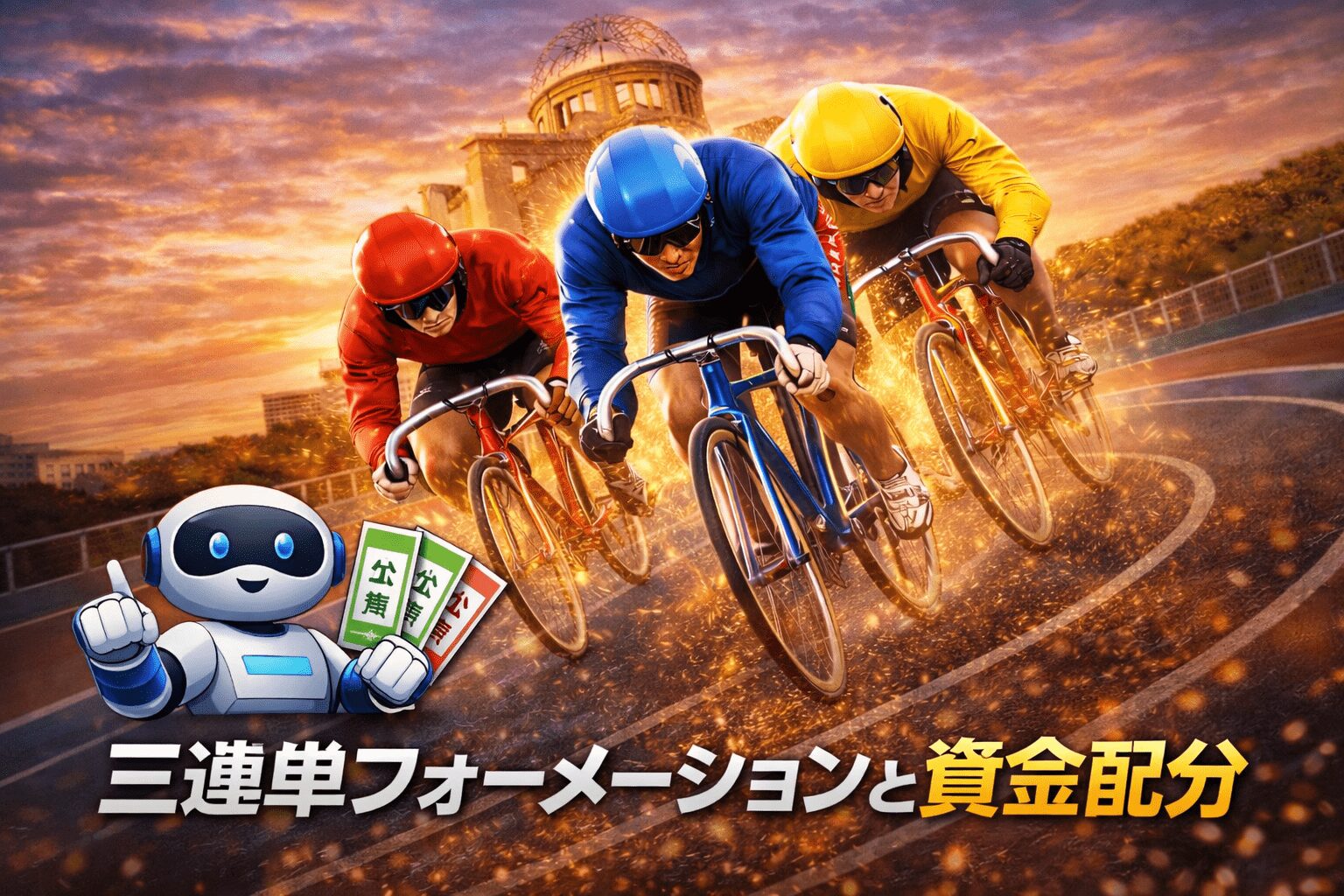 まず結論から整理します。今回の広島競輪12R・ひろしまピースカップ(G3)のAI買い目は、⑤清水裕友を軸に据え、中国ライン(⑨太田・①松浦)を中心とした三連単フォーメーションで組み立てます。