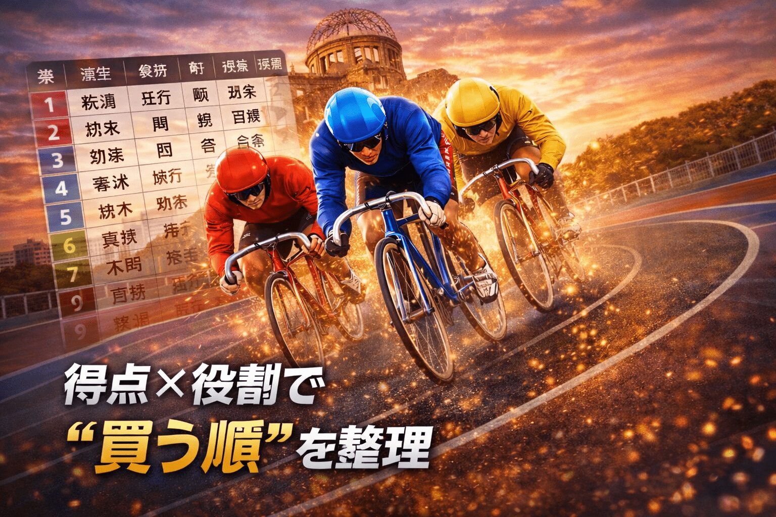 広島バンクはクセがあり、ラインの結束と番手の判断が結果を左右しやすいので、出走表の数字だけでなく「並び」と「仕掛けどころ」を重視して組み立てます。