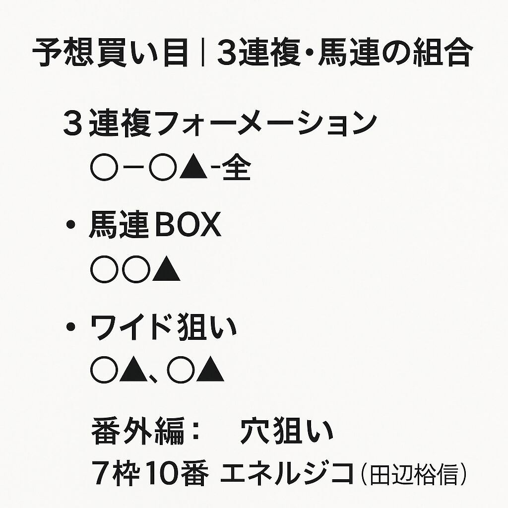 → 組み合わせ6点。好位組+差し馬で的中率良好。