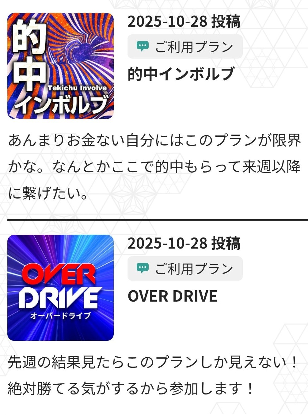 | 無料なのに2週連続で万馬券が的中。精度が期待以上だった。 |