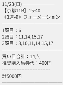 先週の的中を見たらこれ一択!勝てる気がしたので参加しました。