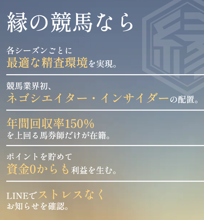 この3つが揃っている競馬予想サイトは多くなく、縁はその数少ない例といえます。